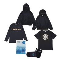 防風ジップパーカー:ポリエステル100%、プラパーカー:ポリエステル100%、クールコアロゴロングTシャツ:ポリエステル95%・ポリウレタン5%、クールコアカレッジTシャツ:綿55%・ポリエステル45%、3Pソックス:ポリエステル67%・綿29%・ポリウレタン4%、クールコアタオル:ポリエステル100%