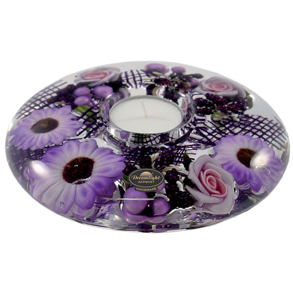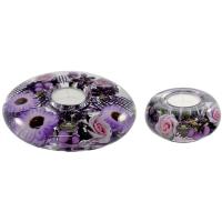 ドイツのガラス職人が一点ずつマウスブロウで作り上げたガラス器に、季節の草花とフルーツのモチーフを一つずつ丁寧に封じ込めた美しいキャンドルホルダーのサイズ違いのセットです。丸みを帯びた小ぶりなサイズ感なので、リビングはもちろん、玄関や寝室などでも邪魔にならず、置く場所を選びません。キャンドルを灯さずに飾るだけでも素敵なインテリアとしてお楽しみいただけます。<ファッションフラワー>バイオレットの花々をブーケのようにあしらいました。落ち着きのある色合いの中にも華やかさが漂います。