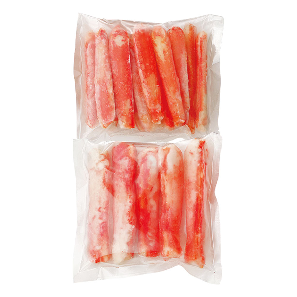たらばがにとずわいがにの一番脚肉のみを使用。ボイルして食べやすく殻をむいた棒肉のセットです。