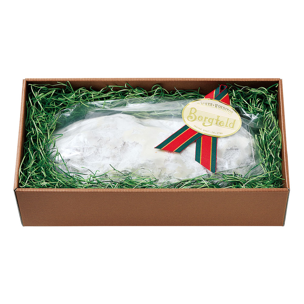 ドイツの代表的なクリスマスケーキ。ラム酒漬レーズンやアーモンド、クルミなどを使用。焼きたてにバターをたっぷり染み込ませ、砂糖でコーティングしました。