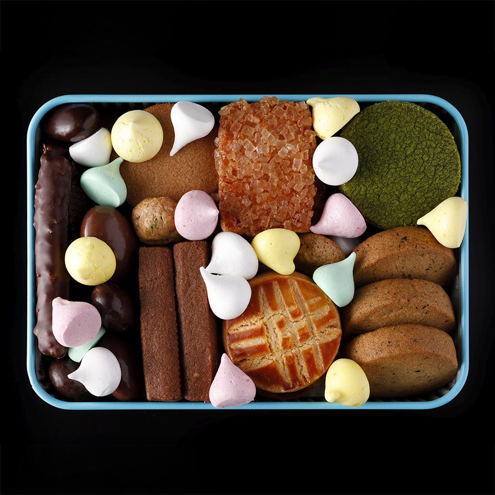 抹茶サブレ、ホワイトチョコレートコーティングメレンゲ、メレンゲ、アマンドオレ、アマンドノワール、サブレバニラ、サブレバニラショコラ、サブレシナモン、チョコパイ、クロッカン、パルメザンクッキー、オランジェットノワール 合計185g