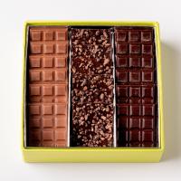 パスカル・ル・ガックオリジナルブレンドのカカオ分60%のビターチョコレート、カカオ分35%のミルクチョコレート。そしてカカオ分60%のビターチョコレートにカリッとしたカカオニブの食感が独特の3種類のミニタブレットの詰め合わせです。