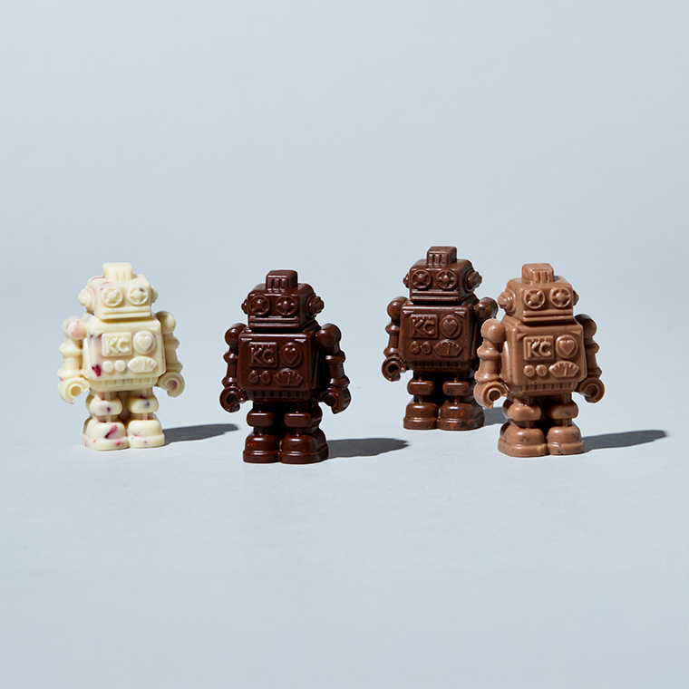 KOBE CHOCOのマスコットキャラクター「ロボチョ」をモチーフにしたチョコレートをペンケース缶にアソートしました。