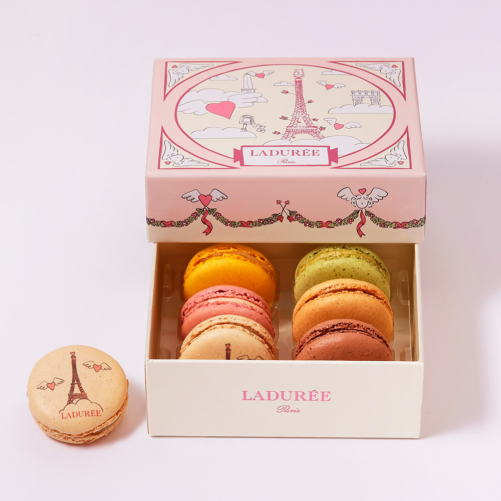 フランス人アーティスト、ギヨーム・サルダンの遊び心あふれるロマンティックなパリを描いたマカロンボックス。