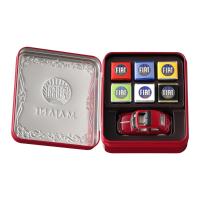チョコレート6粒(クラシコ、ノワール、エクストラノワール、ピスタチオ、フリーダム、カラメル)、Fiat500プルバックミニカー×1 ※Fiat500キーチェーン付き