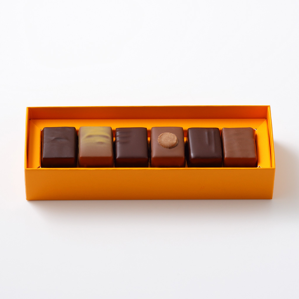 6個(サンサシオン、アカジュー、アンフィニマン プラリネ アマンド、ショコラ オ マカロン アンフィニマン プラリネ ピニョン ド セドル、アンフィニマン プラリネ ピスターシュ、マチルダ 各1)