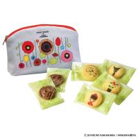 カラフルな花のポーチにはミルクチョコレートと4種類のイラストをプリントしたバタークッキーを詰め合わせました。