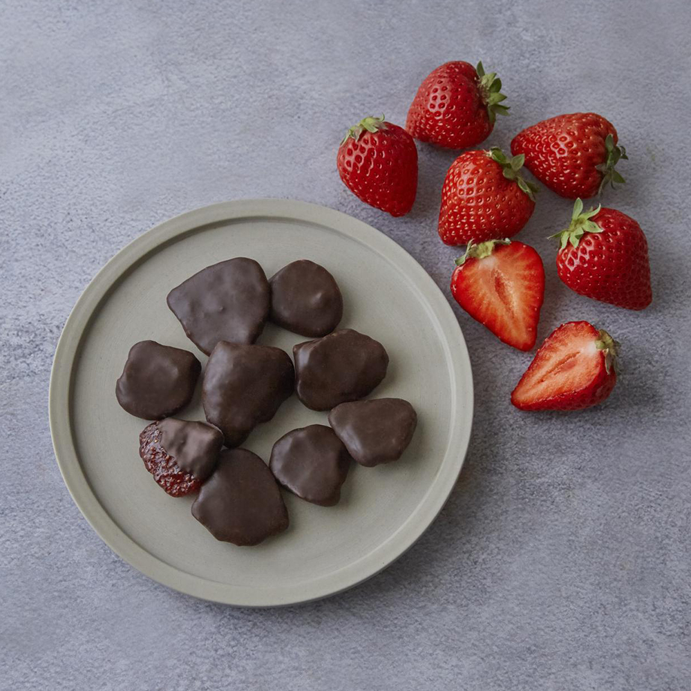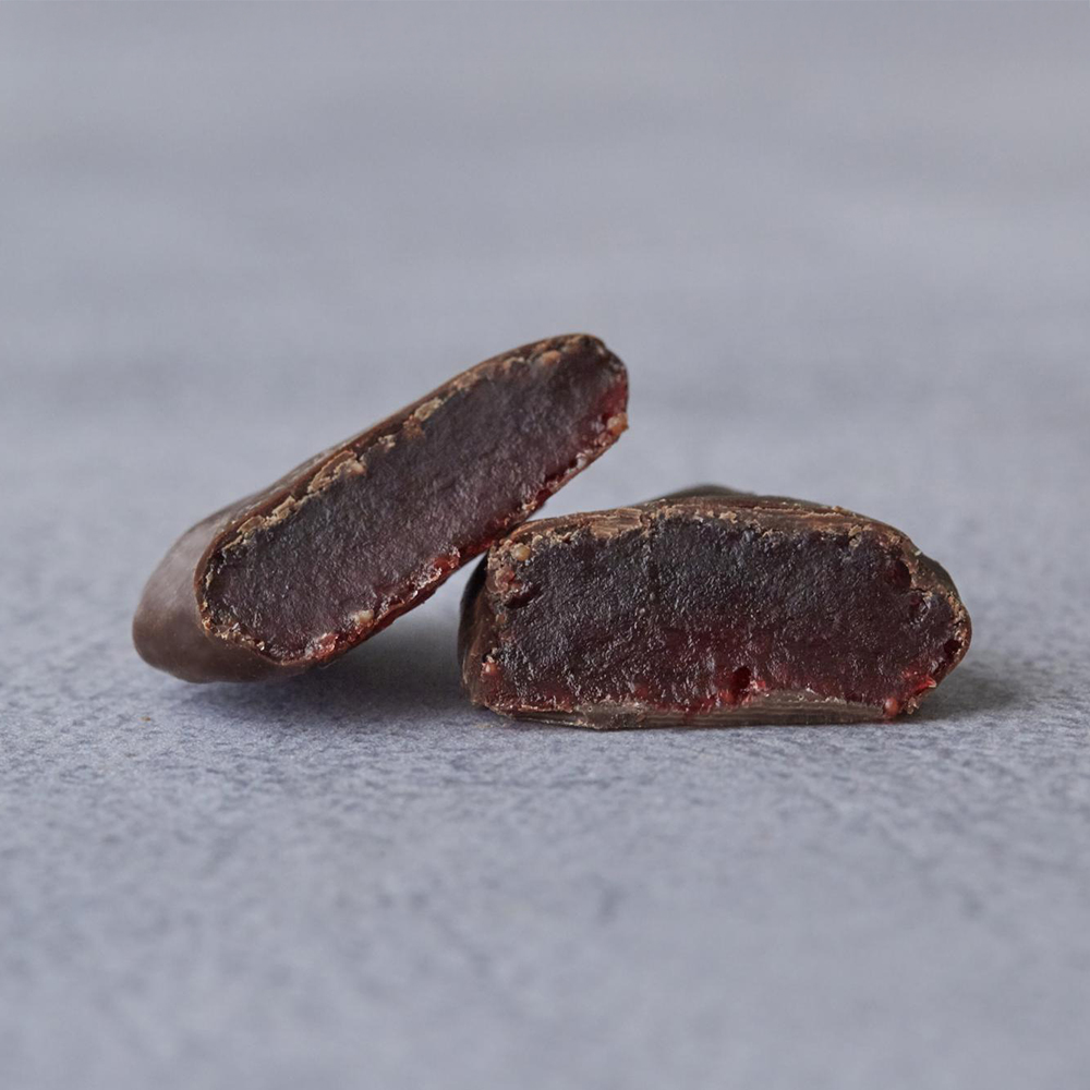 ジュレやいちご風チョコでは味わえない、ソフトな果肉の食感と甘酸っぱさがカカオ60%ダークチョコとマッチ。果肉の肉厚感といちごのつぶつぶ感までたのしめる、福岡県産あまおうを使用したチョコレート。ひとつぶ丸ごとセミドライに仕上げているので、食べ応えのあるおいしさです。セミドライフルーツ全体をチョコレートコーティングしております。