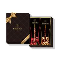 フランス語で「実り」を意味するラレコルト。澄ましバターをしみ込ませたバターリッチプレッツェルに、アーモンドとヘーゼルナッツを使ったオリジナルレシピのチョコレートを纏い 、マカダミアナッツとウォルナッツをぎっしりと散りばめた〈クアトロナッツ〉と、澄ましバターをしみ込ませたバターリッチプレッツェルにオリジナルレシピのチョコレートを纏い、ストロベリーとクランベリーをぎっしりと散りばめた2つのベリーの味わい深い食感と旨みが楽しめる〈ベリー&ベリー〉を専用のギフト箱に詰め合わせました。