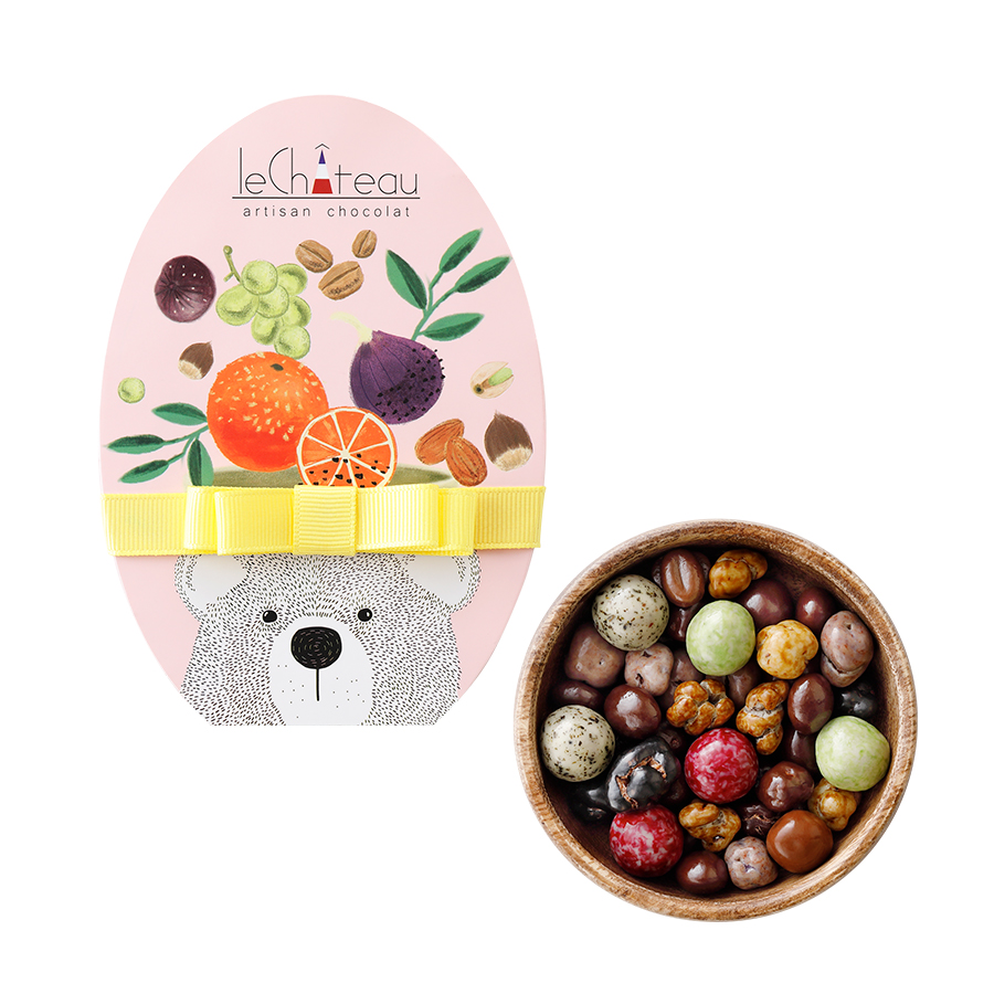 115g[レーズン、イチジク、コーヒー(ミルク/ビーンズ)、ヘーゼルナッツ(ダーク/ミルク)、シリアルボール(ラズベリー/ジャスミンティー/ライム)、オレンジ、クリスピーポップ(塩キャラメル/ブルーベリー)]12種