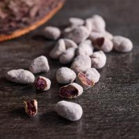 ウガンダ産の農園で丁寧に皮剥きをしたカカオ豆をキャラメリゼし、ショコラレでコーティングしました。ローストされていないので本来カカオがもつフルーティーな香りや食感や味わいを感じていただくことが出来ます。カカオ豆のフレッシュな味わいを邪魔することのないバランスの良いショコラオレでコーティングした今までにないカカオ豆をお楽しみいただけます。