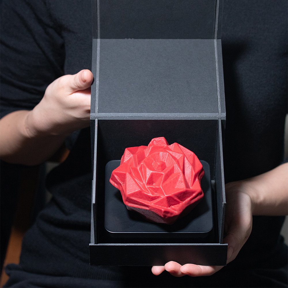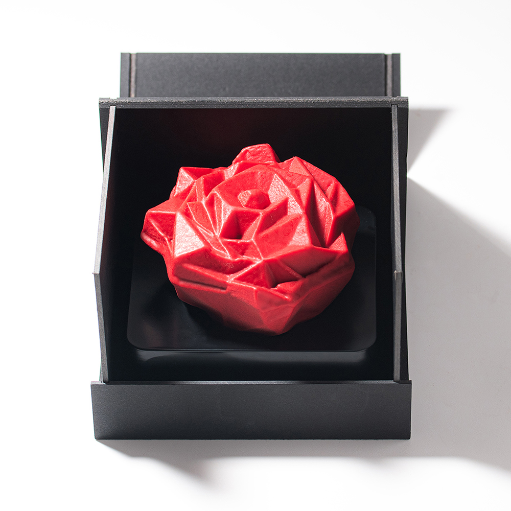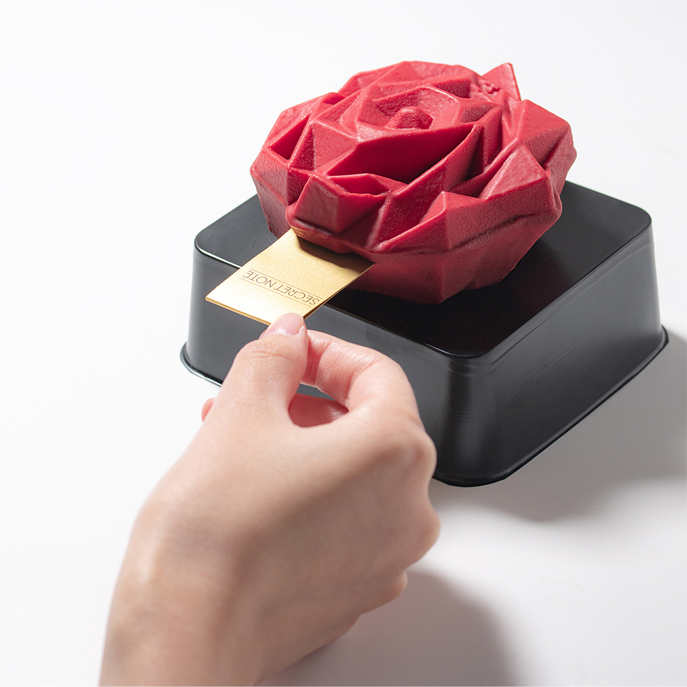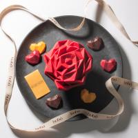 「愛情」「情熱」といった花言葉を持つ、真紅のバラのチョコレート