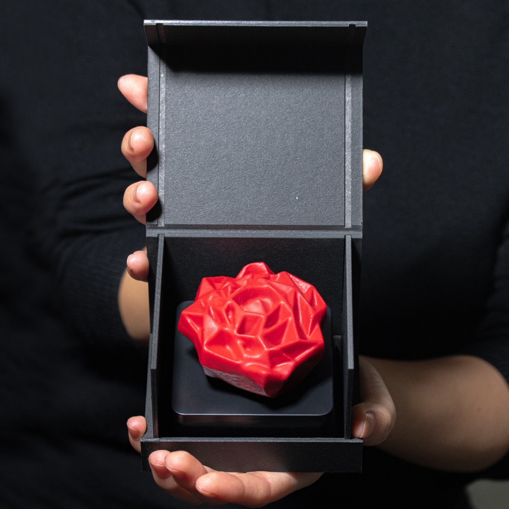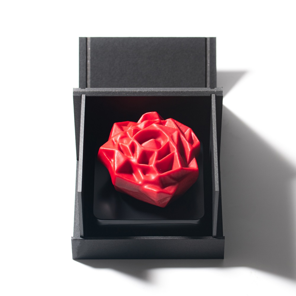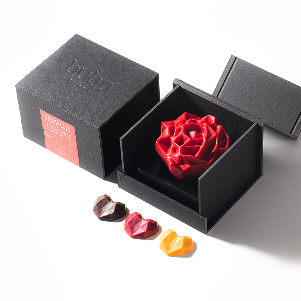 「愛情」「情熱」といった花言葉を持つ、真紅のバラのチョコレート