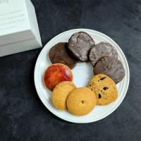 ナッツが入った風味豊かなクッキーの片面にチョコレートをかけた季節限定のクッキーと、いろいろな味わいのクッキーを詰め合わせました。リボンのかかったかわいいボックスに美味しさをギュッと詰めて大切な方への贈りものに。