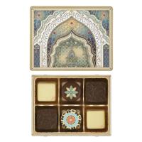 パッケージはモスクの白い朝をイメージしたデザイン。甘酸っぱいざくろや味わい深いブラッドオレンジ、フルーティーな味わいのチョコレートを中心に詰め合わせました。