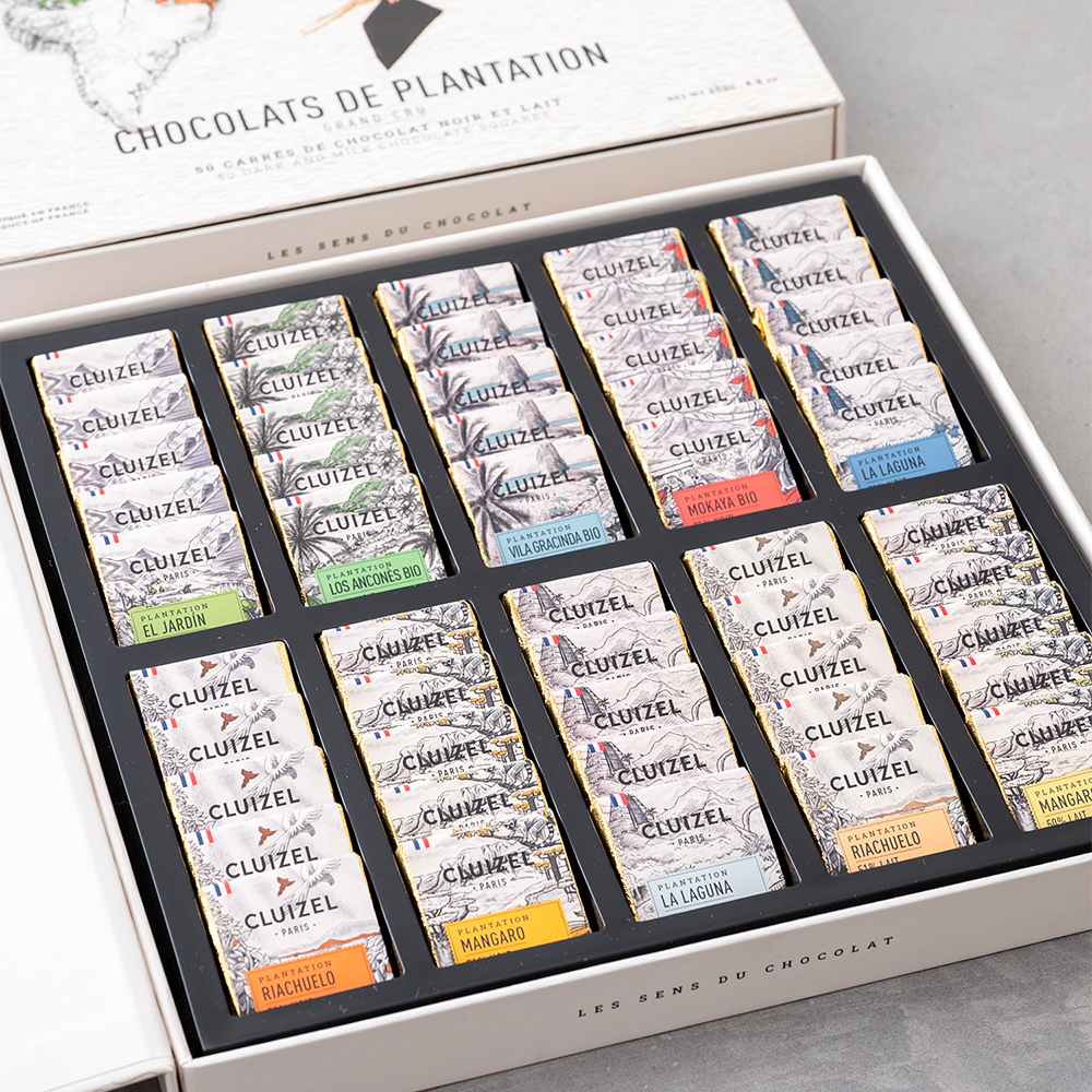 クルイゼル提携農園の単一カカオを使ったダークチョコレートとミルクチョコレートの食べ比べができる詰め合わせ。渋みのあるフルーティな味わい、マイルドなものまで繊細な味の違いを楽しむ通な逸品。クルイゼルはその土地、そしてその土地を守るカカオ農園の人々への敬意を表して、チョコレートに農園の名前をつけています。