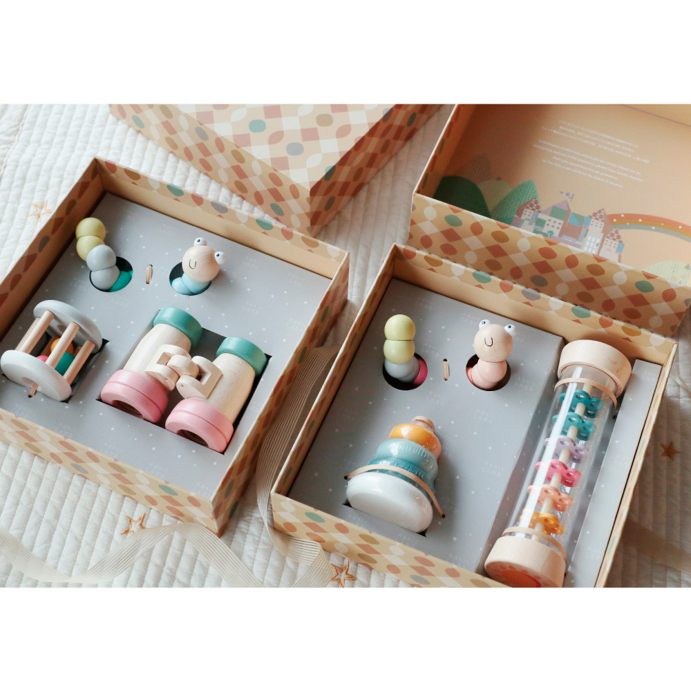 インテリア・雑貨を扱う堺市の<magnet>からかわいいパッケージが特徴のAdnil LAND(アドニルランド)のおもちゃが3点セットになったギフトセット。箱の内側にはAdnil LANDのものがたりが。おもちゃ箱として使うことができます。お部屋に散らばっていても可愛く見えちゃう優しい色合いのおもちゃ。片付けの暇もない親御さんもニッコリ。振ったり、掴んだり、脳に刺激を与えてくれ、形状を認知するのに最適な赤ちゃん用のおもちゃです。パッケージも飾りたくなるほどしっかりした作りなので、出産祝いや誕生日のお祝いなどのベビーギフトにピッタリです。