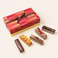 サクサクのクラッシュパイを練りこんだ薄い板チョコレートでカスタードチョコクリームやプラリネクリームをサンドしたミルフィーユ仕立てのショコラ。自家製ドライ苺スライスやクリームで華やかにデコレーション。