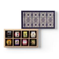 鹿児島県の8つの焼酎蔵から厳選された焼酎を用いて仕上げたボンボンショコラセットです。口中で広がる多彩な焼酎の風味をご堪能いただけます。薩摩切子をモチーフとした木箱入りパッケージに収められています。