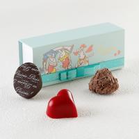 ブランドを代表する伝統の「トリュフ」、日本オリジナルテイストの「レッドハート」、パッションフルーツ風味のキャラメル使用の新作「デジレー」を<ウサギのテーマパーク>をイメージした心弾むボックスに詰め合わせました。時代を超えて愛され続ける上質な味わいを心ゆくまでお楽しみください。