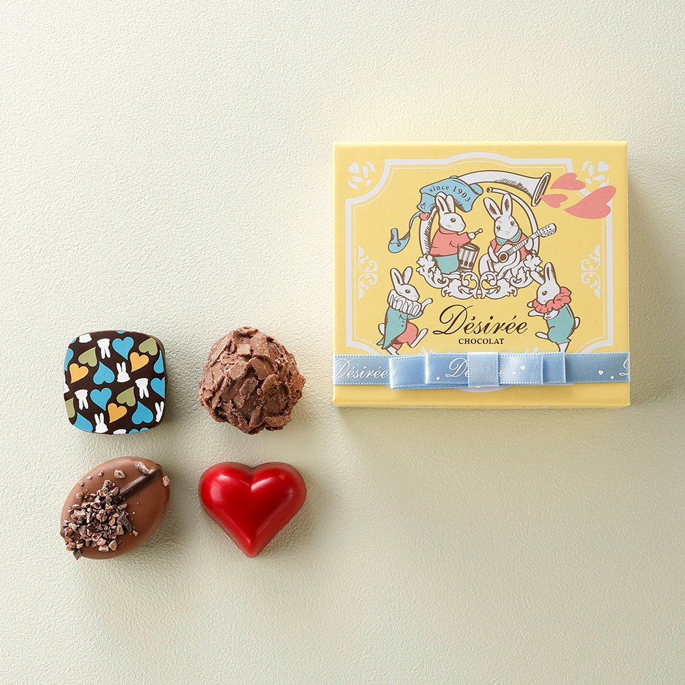 ブランドを代表する伝統の「トリュフ」、日本オリジナルテイストの「レッドハート」、豊かなヘーゼルナッツクリームの新作「ラパン・ブラン」などを<ウサギのテーマパーク>をイメージした心弾むボックスに詰め合わせました。時代を超えて愛され続ける上質な味わいを心ゆくまでお楽しみください。