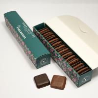 薄く焼き上げたサクサクサブレにブルターニュ名物の薄いクレープを合わせ、レとノワールの2種類のショコラでコーティングしました。程よい塩気に手が止まらない一品です。