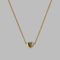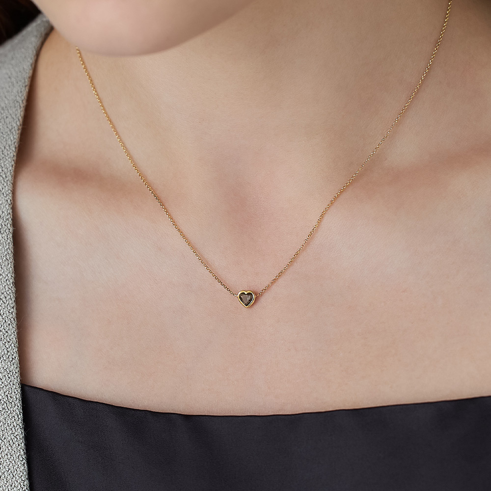 スモーキーなブラウンカラーのハートのネックレス。肌になじむような輝きのチェーンと相まって甘辛ミックススタイルを演出。幸せの象徴ともされているハートモチーフは、モードながらも上品さをプラスしてくれるアイテムです。