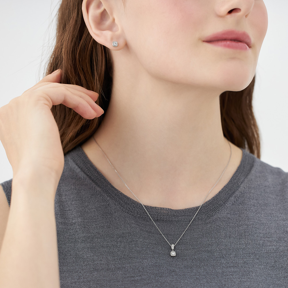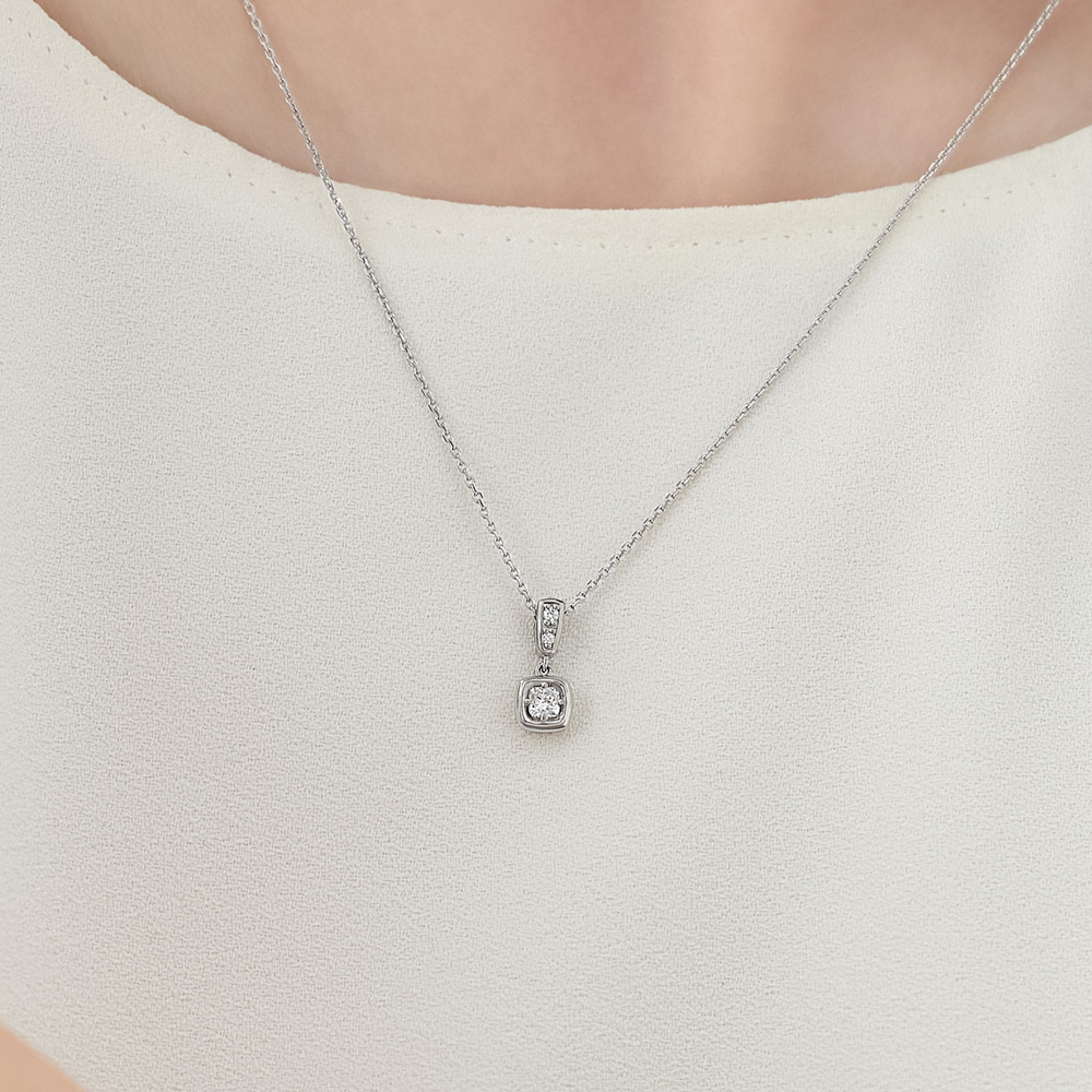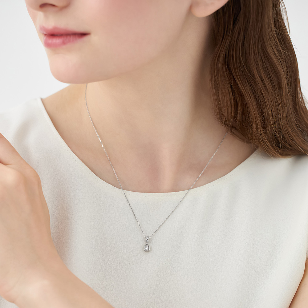 ひとつひとつの小さなしずくがやがて大きな流れを作り出し力強い流れへと変化する、そんなはじまりのひとしずくをイメージしたコレクション。クッションカットを引き立てる印象的な石座が魅力のラグジュアリーなネックレスです。