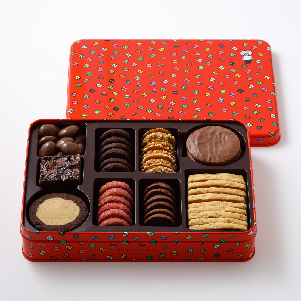 厳選された素材をふんだんに使って焼き上げた、ピエール・エルメ・パリの個性豊かなサブレやショコラをオリジナルの缶に詰め合わせました。