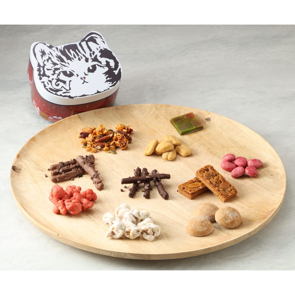 たくさんのリクエストから選ばれた、人気お菓子10種を、心ときめくオリジナル猫缶に詰め込みました。缶のデザインは、シェフの大好きなネコをモチーフにしています。インテリアにもなる上質な仕上がりで、開ける前から気分が華やぐ特別な一箱です。