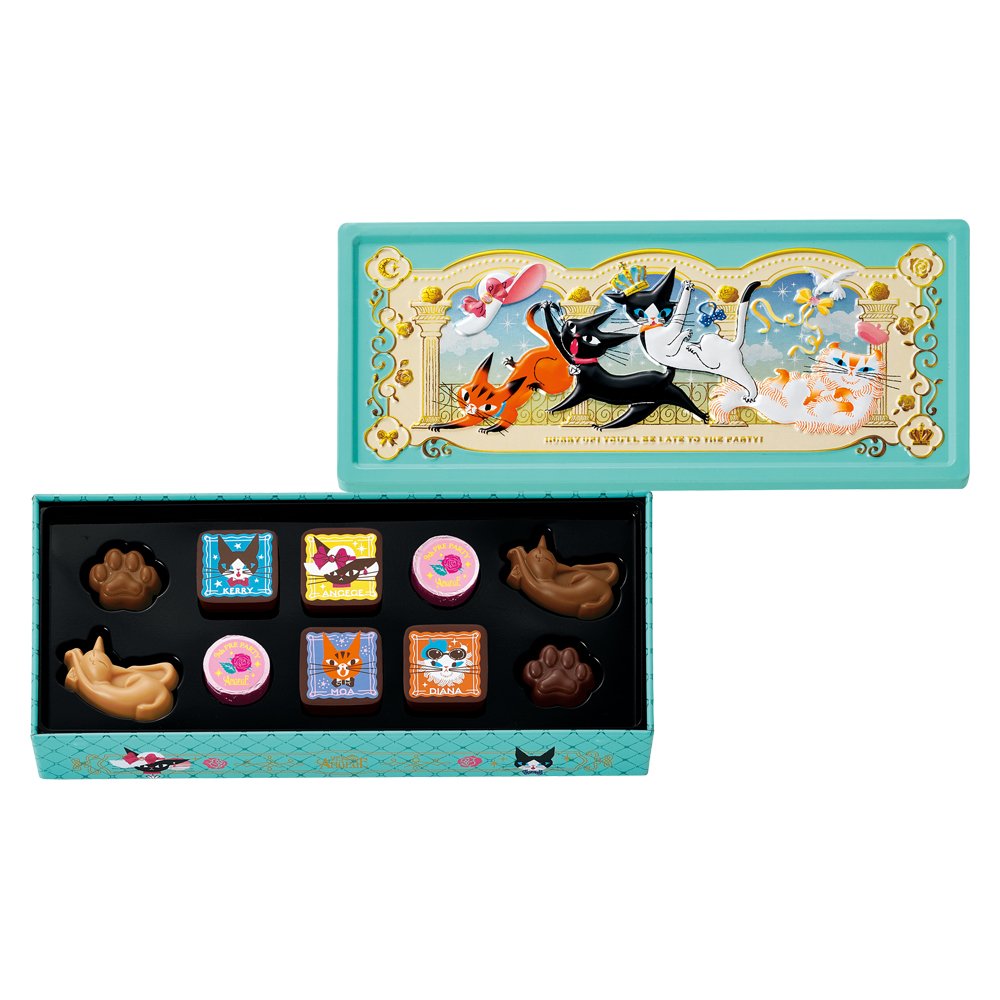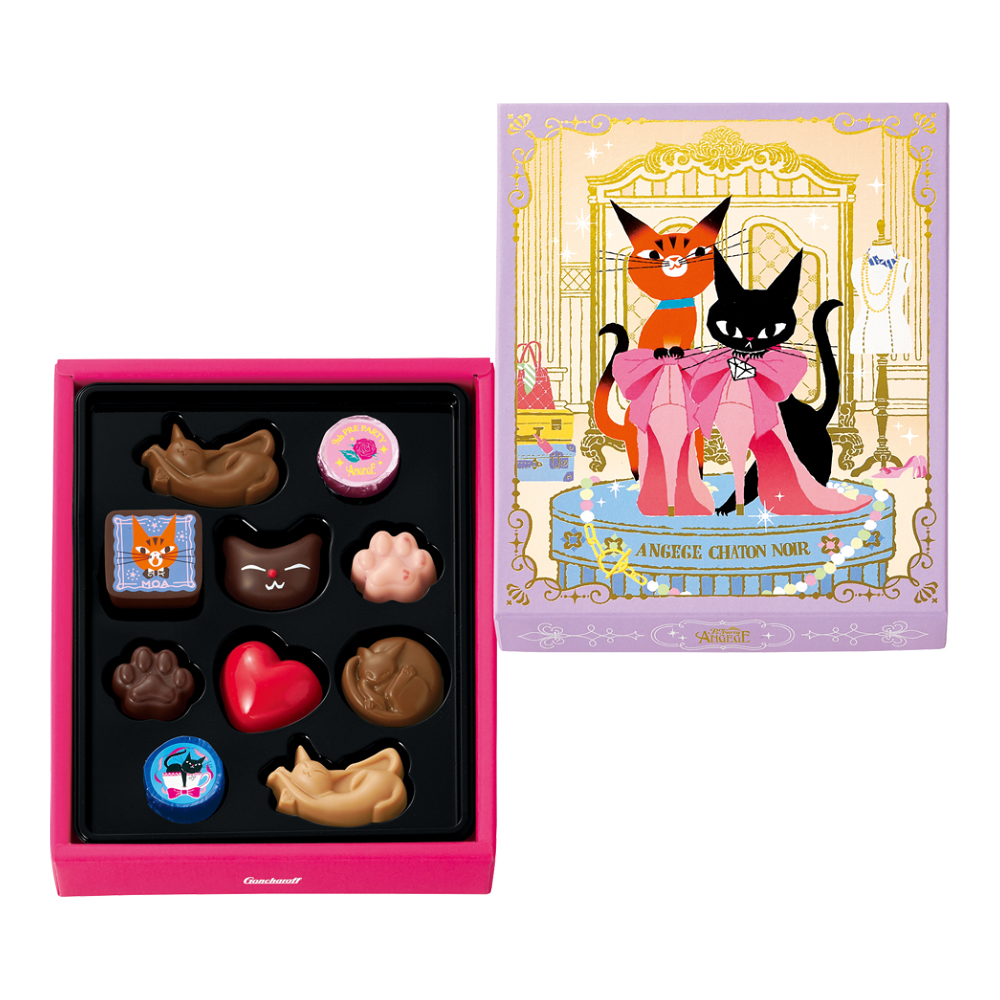 2026年のデザインテーマは「ANGEGE~Pre Party~」。アンジュジュ誕生10周年のパーティーを控えた9年目。アンジュジュと仲間の猫たちは苺のケーキや紅茶を用意してプレパーティーを楽しみます。アンジュジュシリーズ全商品とオリジナルバッグが入ったコンプリートボックスです。