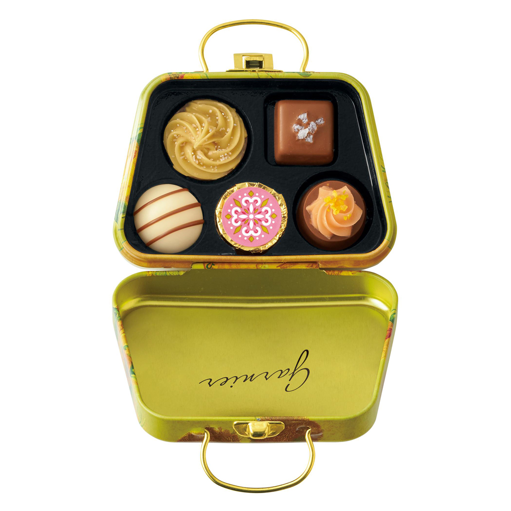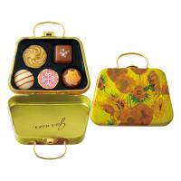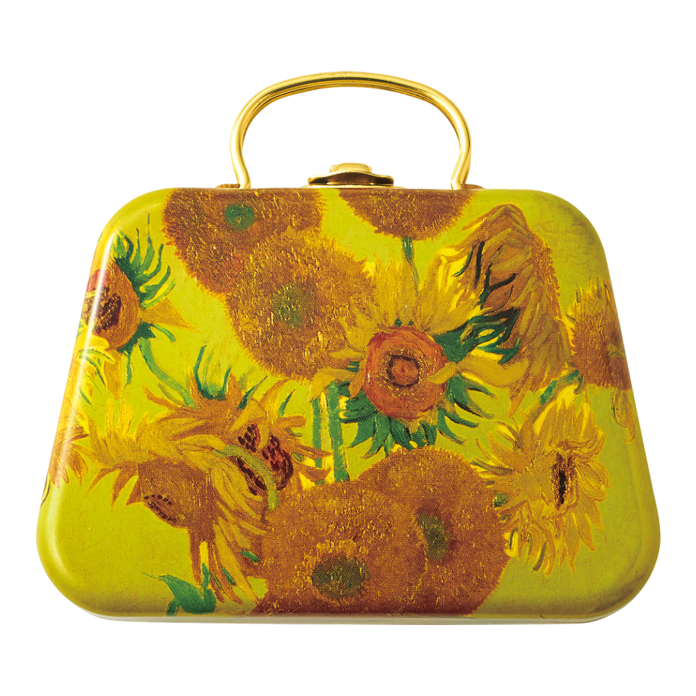 バッグ型の缶に、ひとつひとつ丁寧に仕上げたチョコレートを詰め合わせました。バレンタインの贈りものや、あなただけの特別なコレクションに。デザイン絵画はフィンセント・ファン・ゴッホの『ひまわり』です。