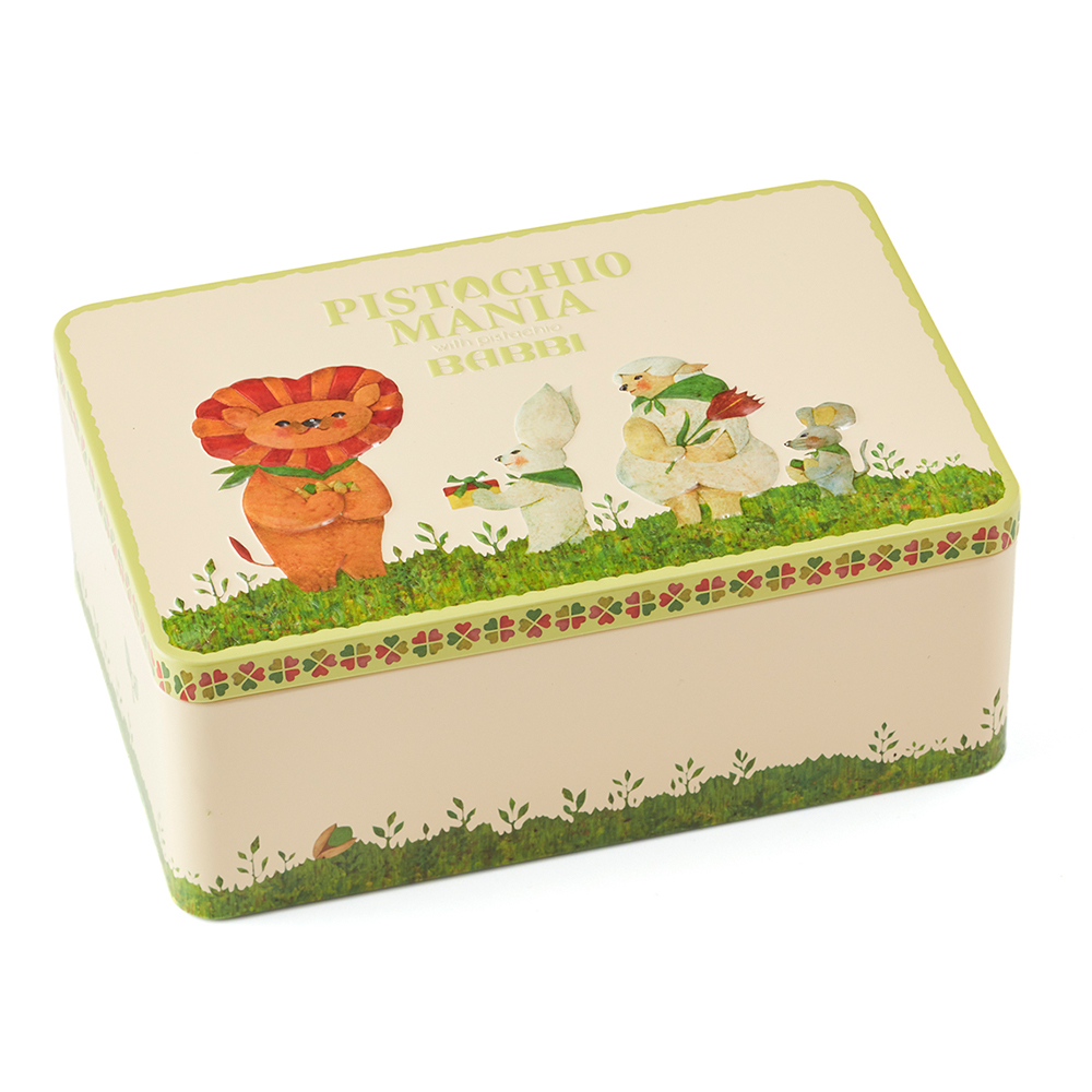 可愛い動物たちが描かれたデザイン缶の中には、人気の「ウィークエンドピスタチオ」をはじめ、ピスタチオの香りと味わいが楽しめる7種のスイーツをアソートしました。