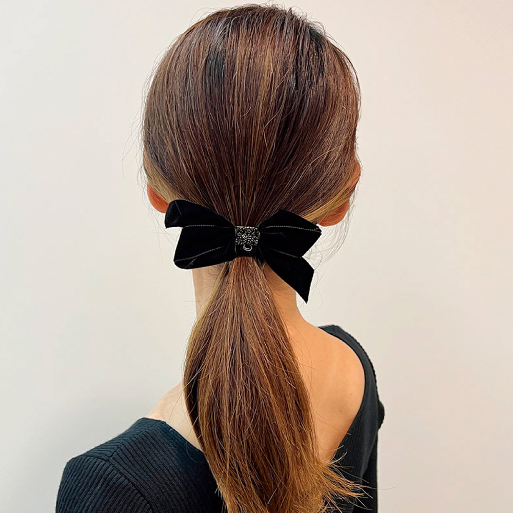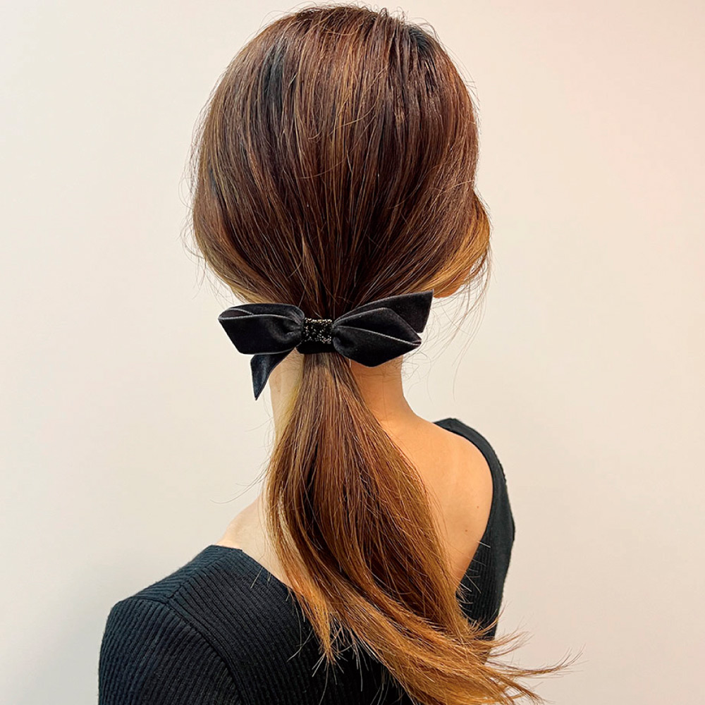 < JenniferOuellette >ベルベットボウポニーテールウィズベルベットスパークルアクセント