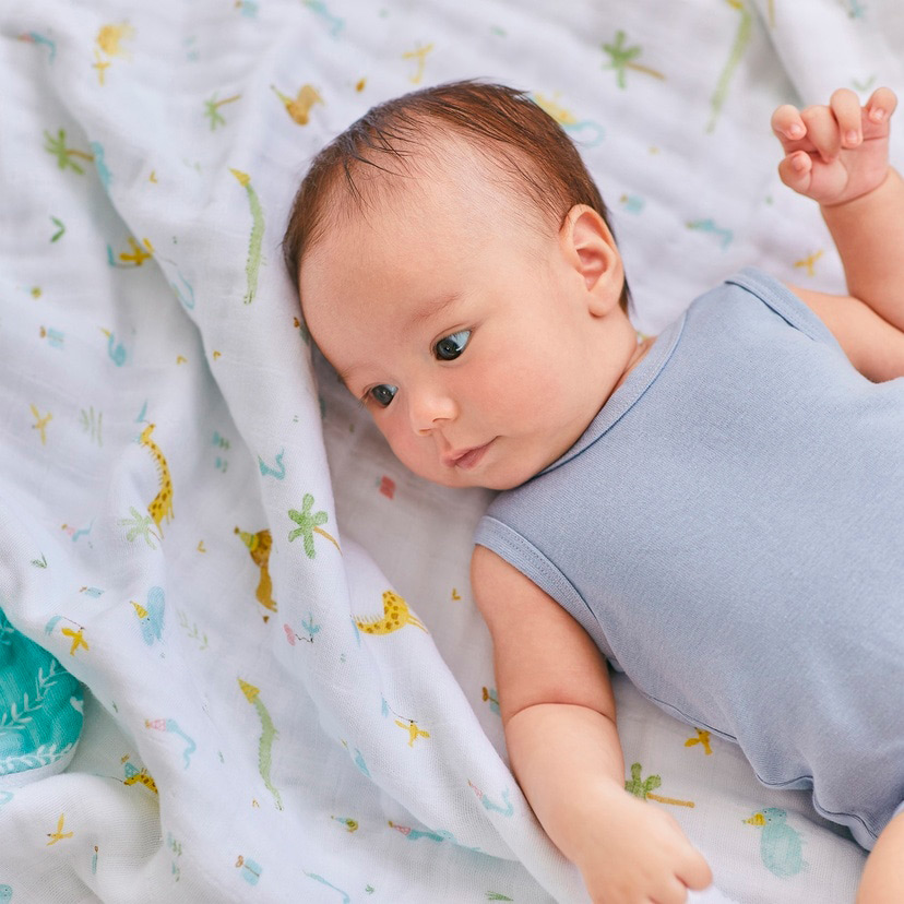 厚みがあり、やさしい肌ざわりで、通気がよくムレにくいため、赤ちゃんを快適にサポートします。大判サイズでくつろぎタイムにぴったり。お出かけ時やオムツ替えマット、プレイマットとしてなど多用途に使えます。洗濯機で簡単に洗え、乾きやすいので、いつも清潔に保てます。 aden + anais(エイデンアンドアネイ)を代表するコットンモスリン素材でつくられたブランケット。ダブルガーゼ4層構造で厚みがあり、やさしい肌ざわりです。 2025 年の干支、巳(へび)をモチーフにした新作で、毎年ご好評をいただいている干支柄コレクション。 巳年にあたる2025 年はヘビをモチーフにしたデザインです。 三角帽子をかぶった可愛らしいヘビや、動物のお友達が楽しそうに描かれています。