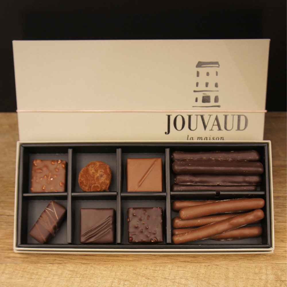 プロヴァンスをこよなく愛し、ストレートな美味しさを届け続けるラ・メゾン・ジュヴォーは親子3代70年以上にわたり受け継がれる、歴史あるパティスリー&ショコラトゥリーです。3代目ピエール・ジュヴォーは伝統を守りつつも新たな挑戦を続けています。南フランスの老舗ショコラティエ〈ラ・メゾン・ジュヴォー〉が贈る「アソートショコラ6OC」。フランス本店で製造されたボンボンショコラ6個と、オランジェット・シトロネット各5本を詰め合わせました。プラリネ系やフルーツ系を多くセレクトした組み合わせ。香ばしいアーモンドやヘーゼルナッツのプラリネ、爽やかなレモン香る「プラリネシトロン」、なめらかな口どけの「トリュフ」、オレンジピール入りの「ヌガモンテ」など、個性豊かな味わいが並びます。ビターチョコレートで包んだオレンジピールの「オランジェット」と、レモンピールをミルクチョコレートで仕上げた「シトロネット」も華やかなアクセントに。一粒ごとに広がる香りと食感のハーモニーを、ゆったりと味わう贅沢な時間をお楽しみください。