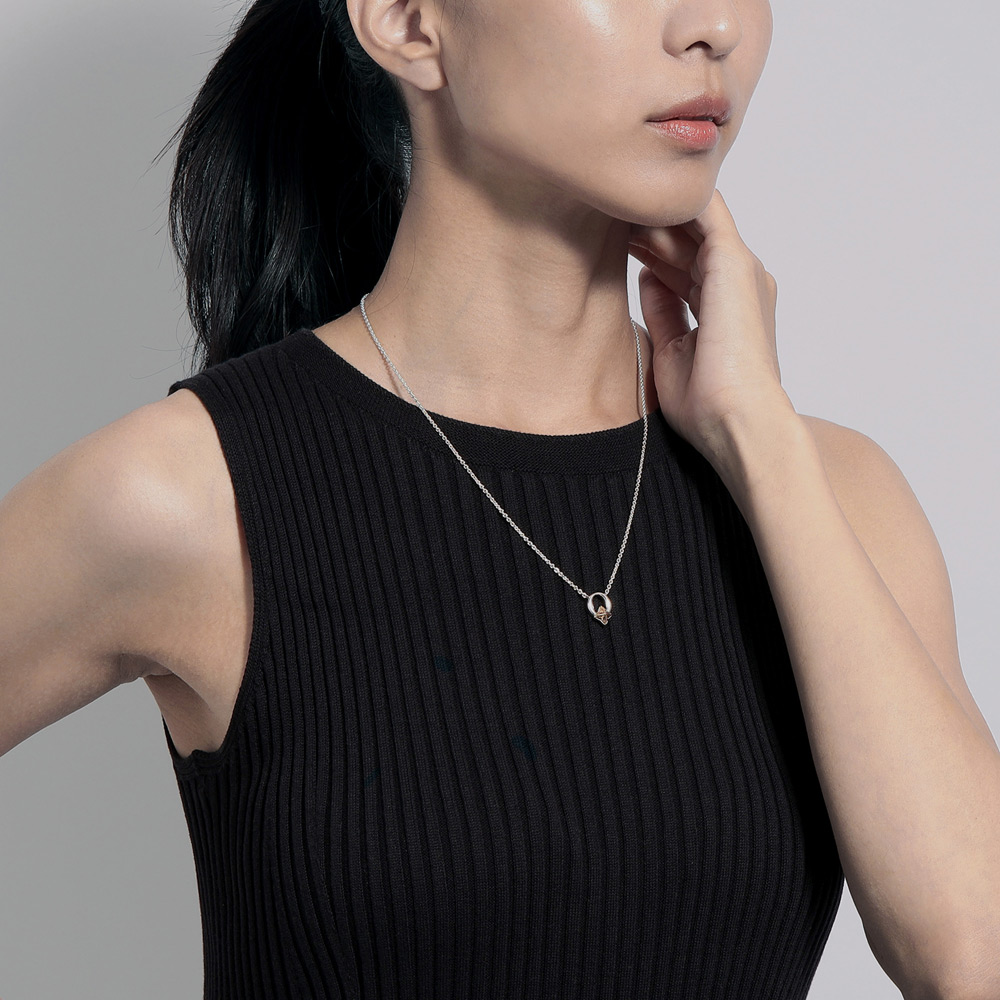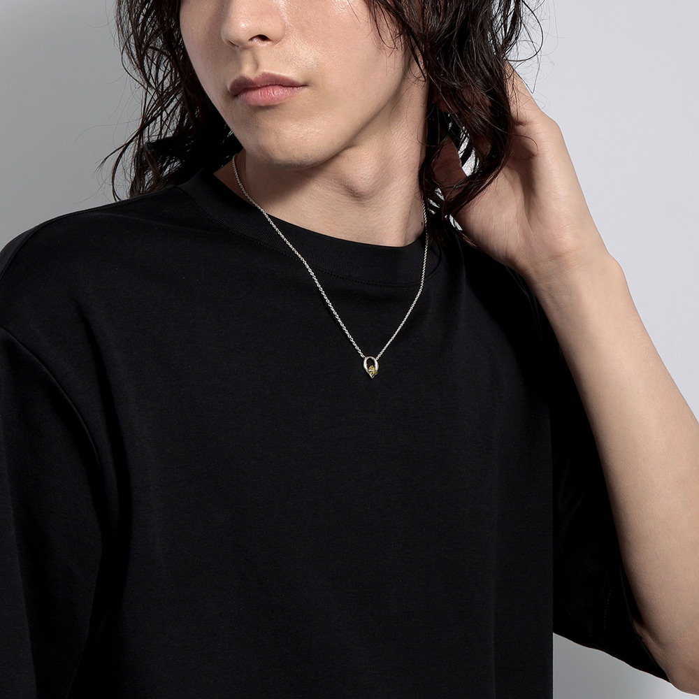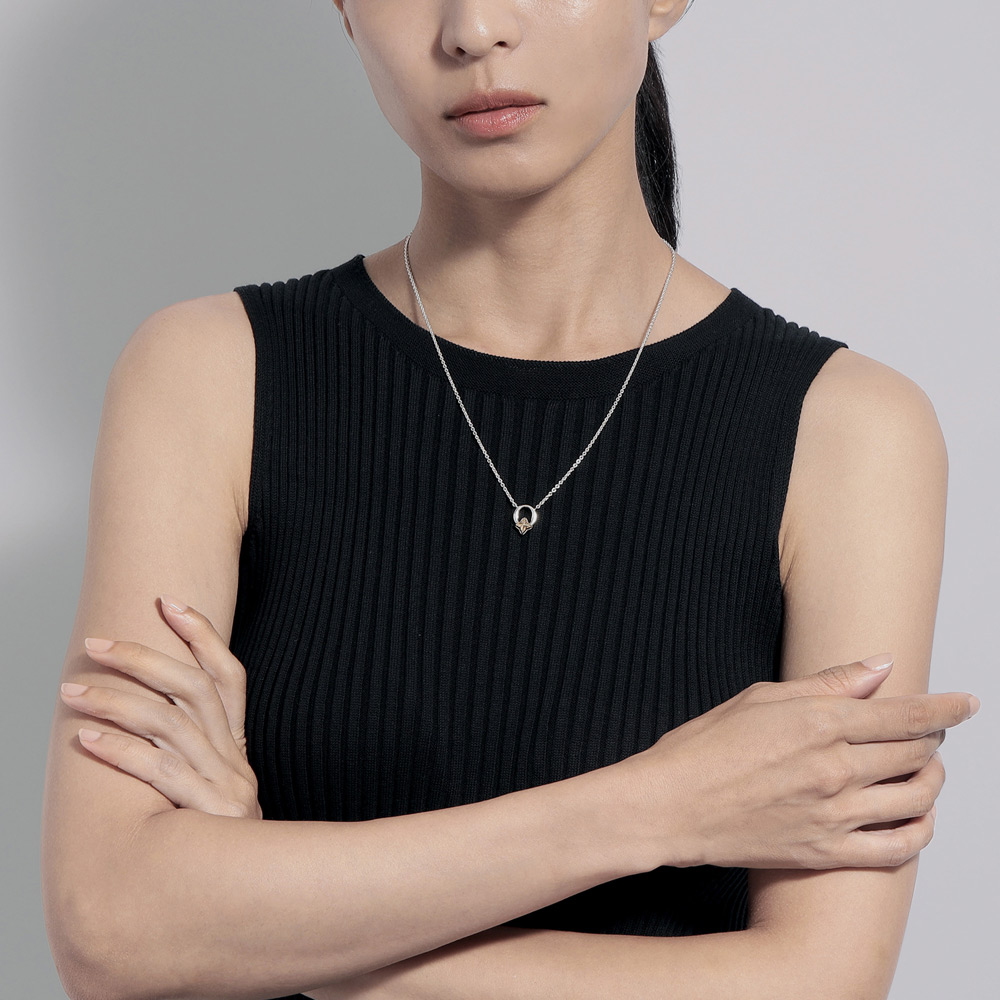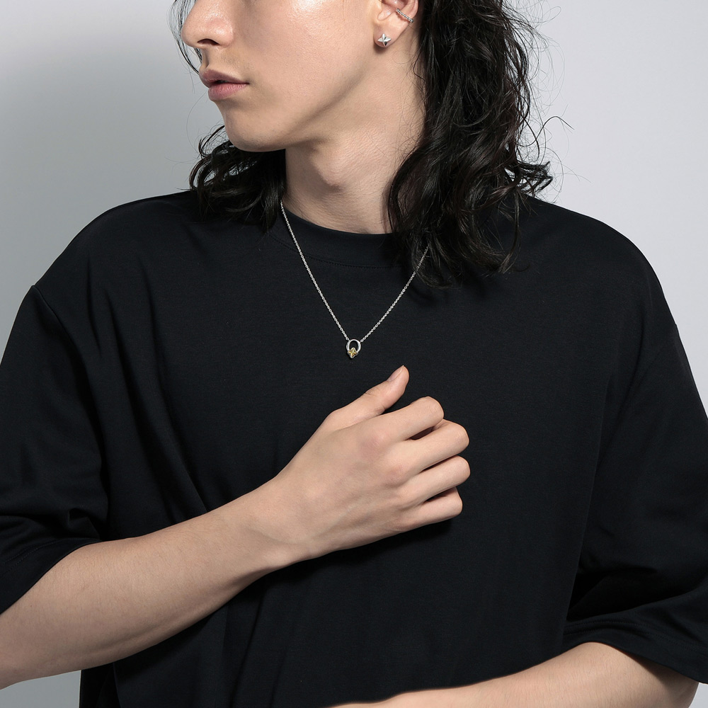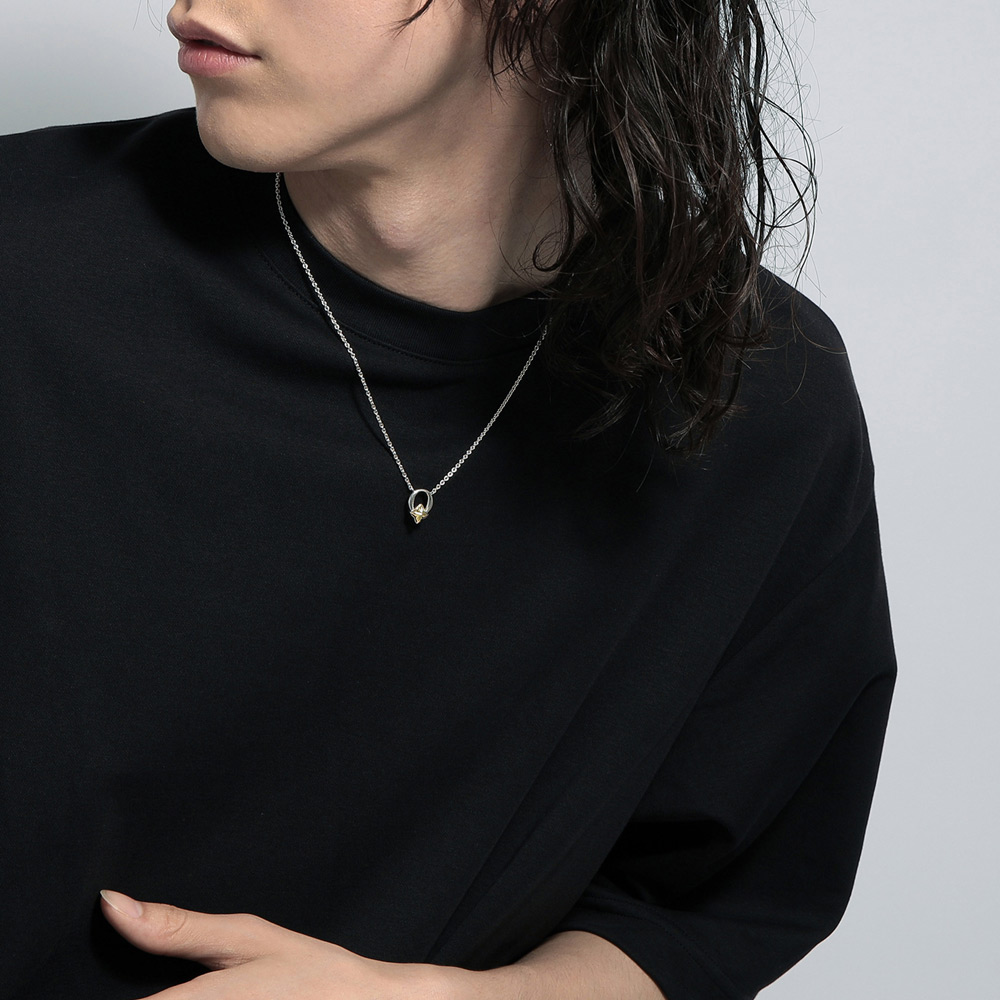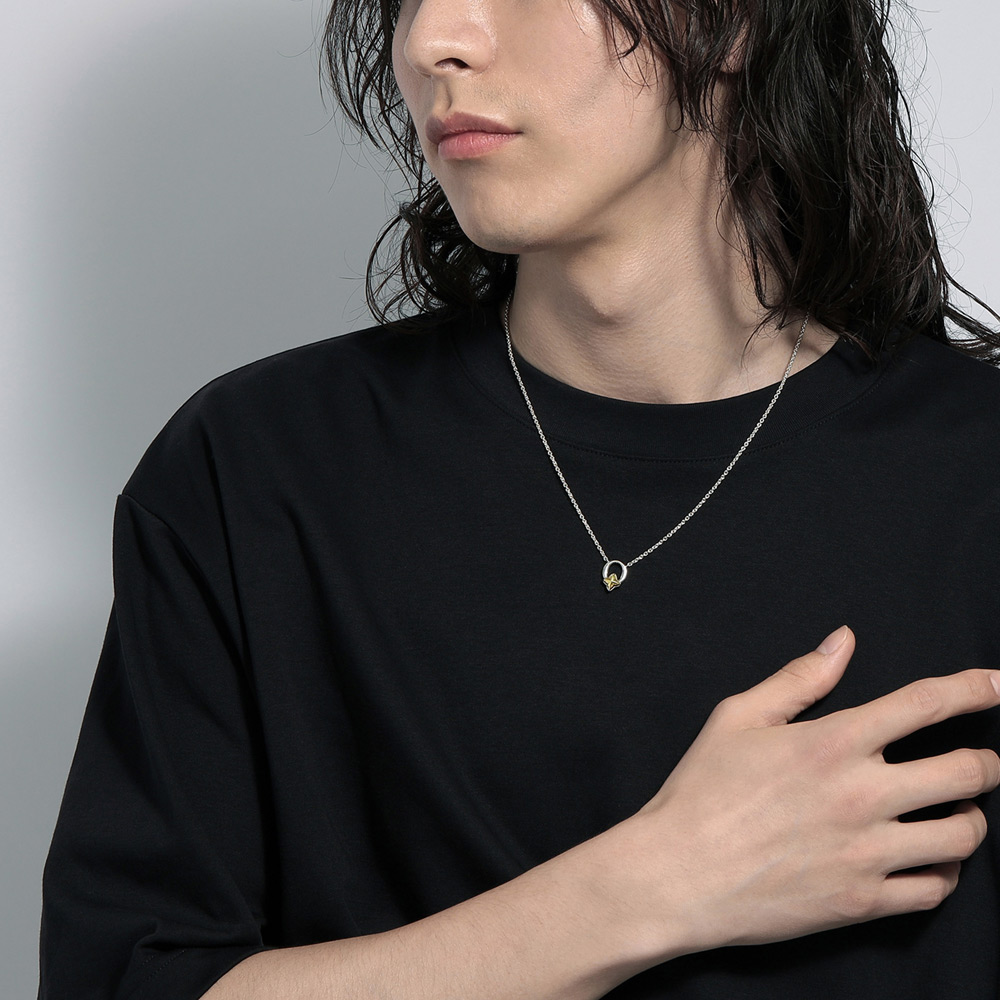 柔らかく滑らかな仕上げの輪にクロススタッズを組み合わせた、ディティールのコントラストが魅力。 立体感のあるトップに合わせ、チェーンは高級感のある密度の高い小豆チェーンを使用。 シルバーのクリーンな表情にK18イエローゴールドの程よい装飾性が加わり、顔周りに存在感を与えてくれます。※2026年1月12日迄の期間限定プライス