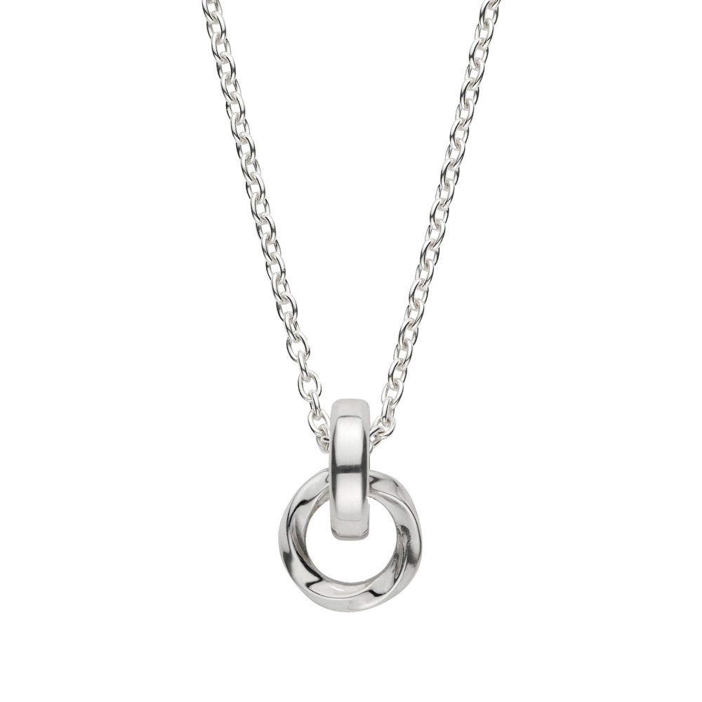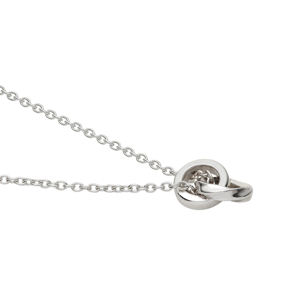 2つの異なったデザインの輪がリンクしたネックレス