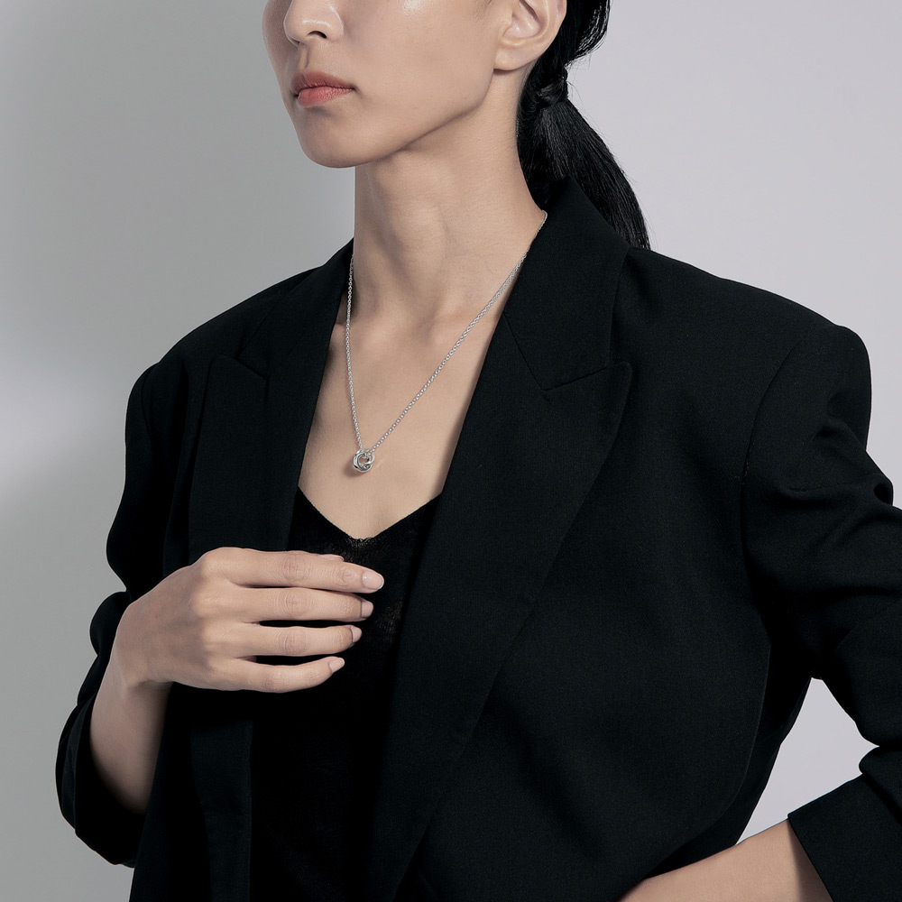 トップは2way仕様。チェーンの通し方によって印象が変わるので、どんなスタイリングにも合わせやすいネックレスです。パートナージュエリーとしてもおすすめです。