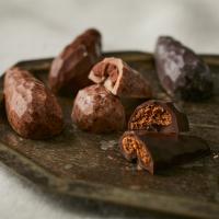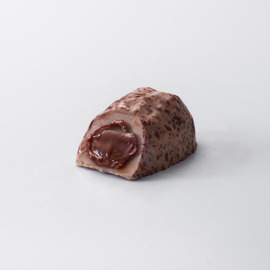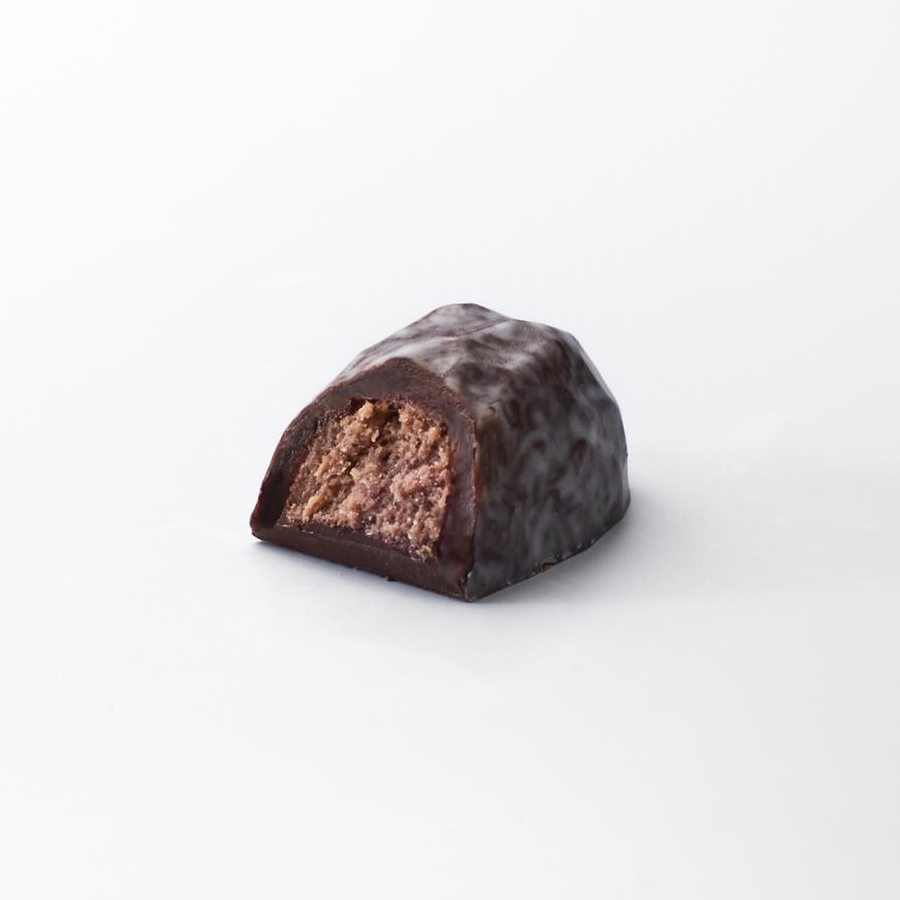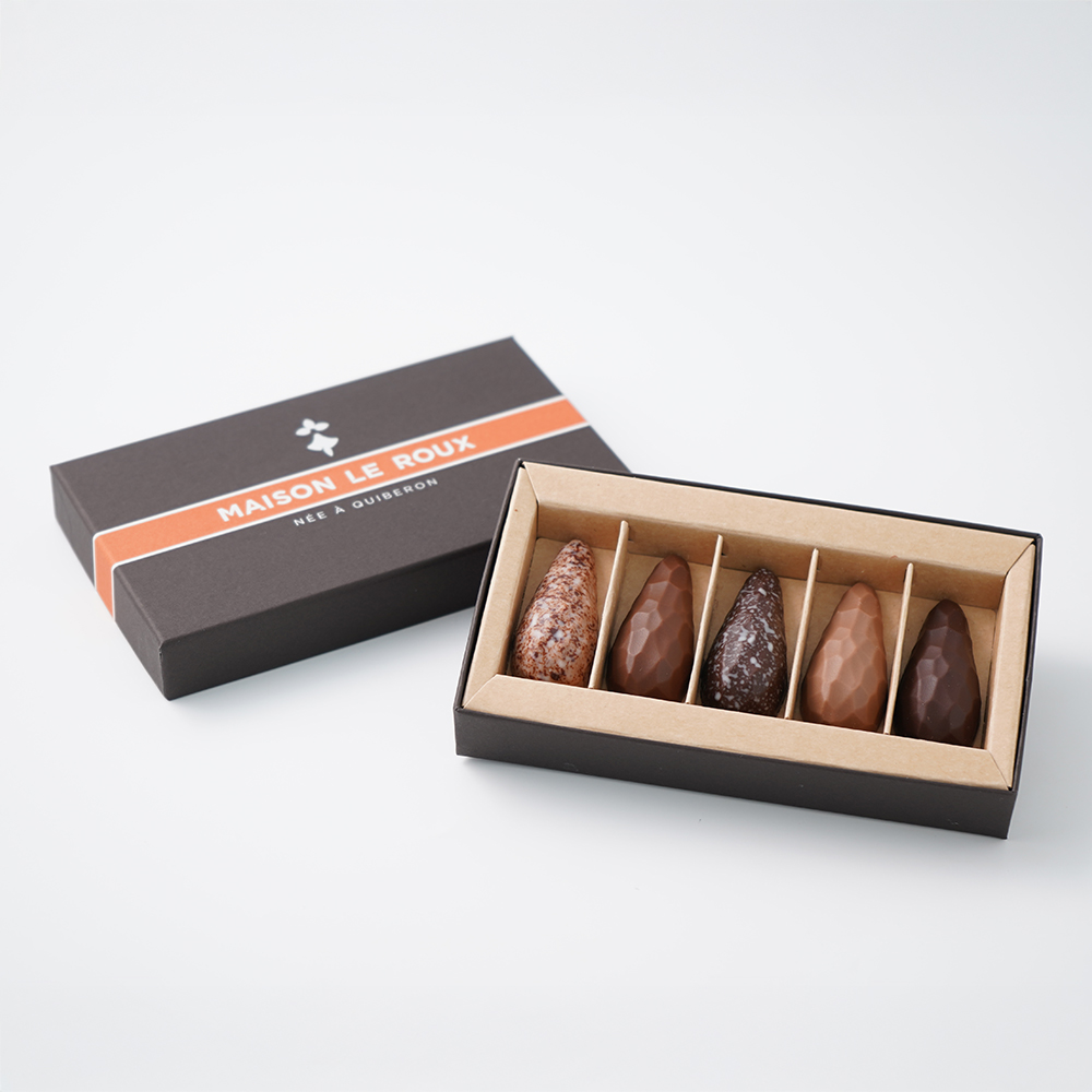 ブルターニュ・カルナックの巨石文化を模したボンボンショコラ。プラリネやガナッシュ、キャラメルなどのセンターをチョコレートでコーティングしています。