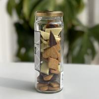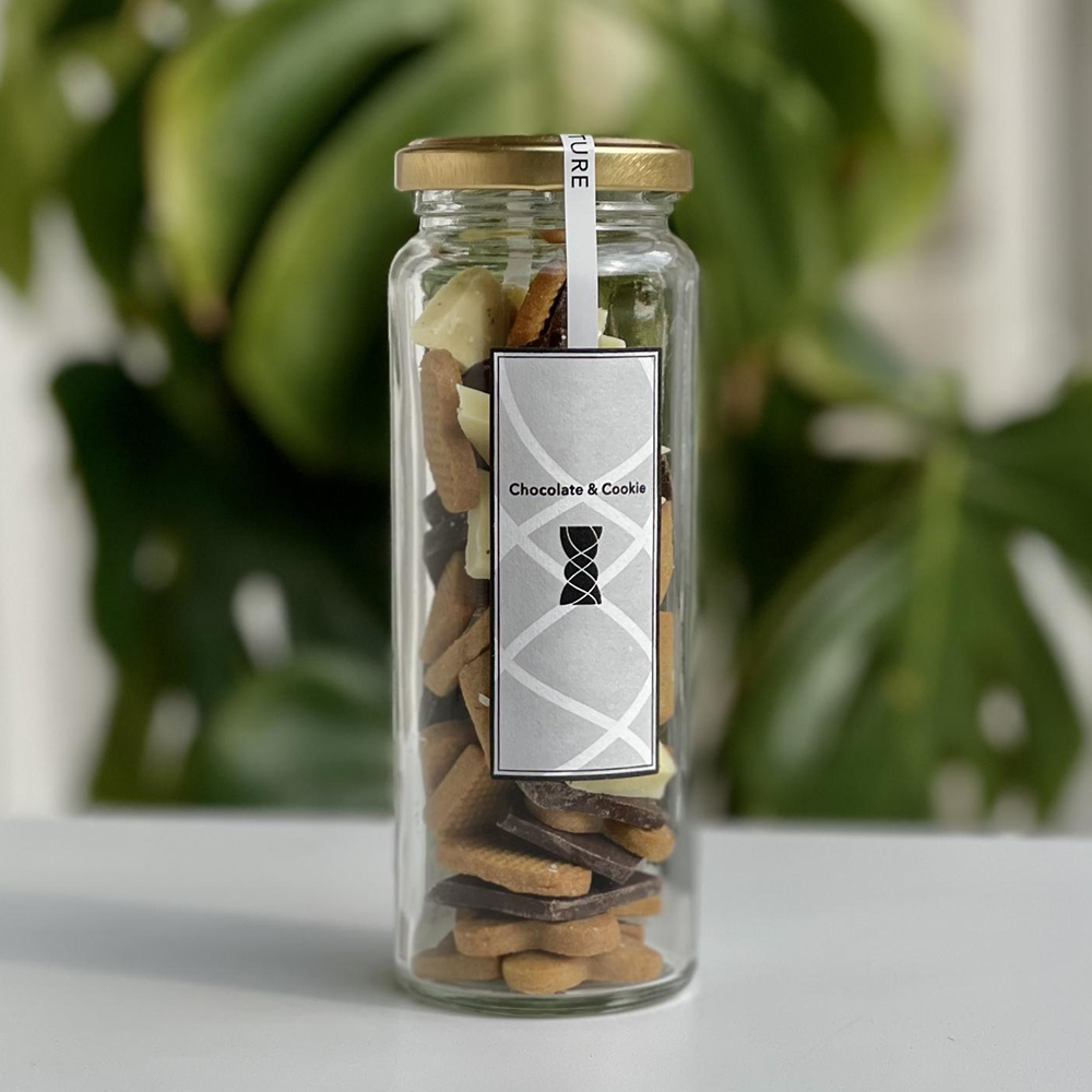2種類のクラフトチョコレート(クラシックガーナ、クラシックホワイト)の濃厚で深みのある味わいと、黒糖をきかせた素朴でシンプルなクッキーが相性抜群。一緒に食べると程よい甘さのマリアージュがお楽しみいただけます。