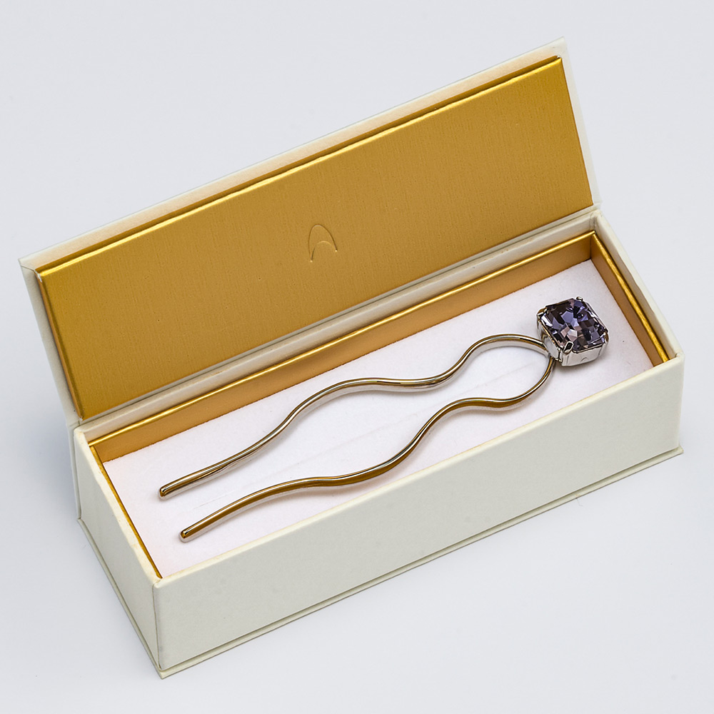 「HOLIDAY COLLECTION2025」ホリデーシーズンにぴったりな光を放つスティック。シンプルながらも存在感のある一粒のクリスタル(4色展開)が、凛とした強さを演出。カジュアルからドレスアップまで幅広いスタイリングに合わせられ、重ね付けもおすすめ。クリスタルを引き立たせるウェーブ状のスティックは、髪にフィットしやすく、やさしい着け心地。ホームパーティーやイベントなど、様々なシーンに合わせて楽しんで。専用プレミアムボックス付きで、大切な方への贈りものにもおすすめです。