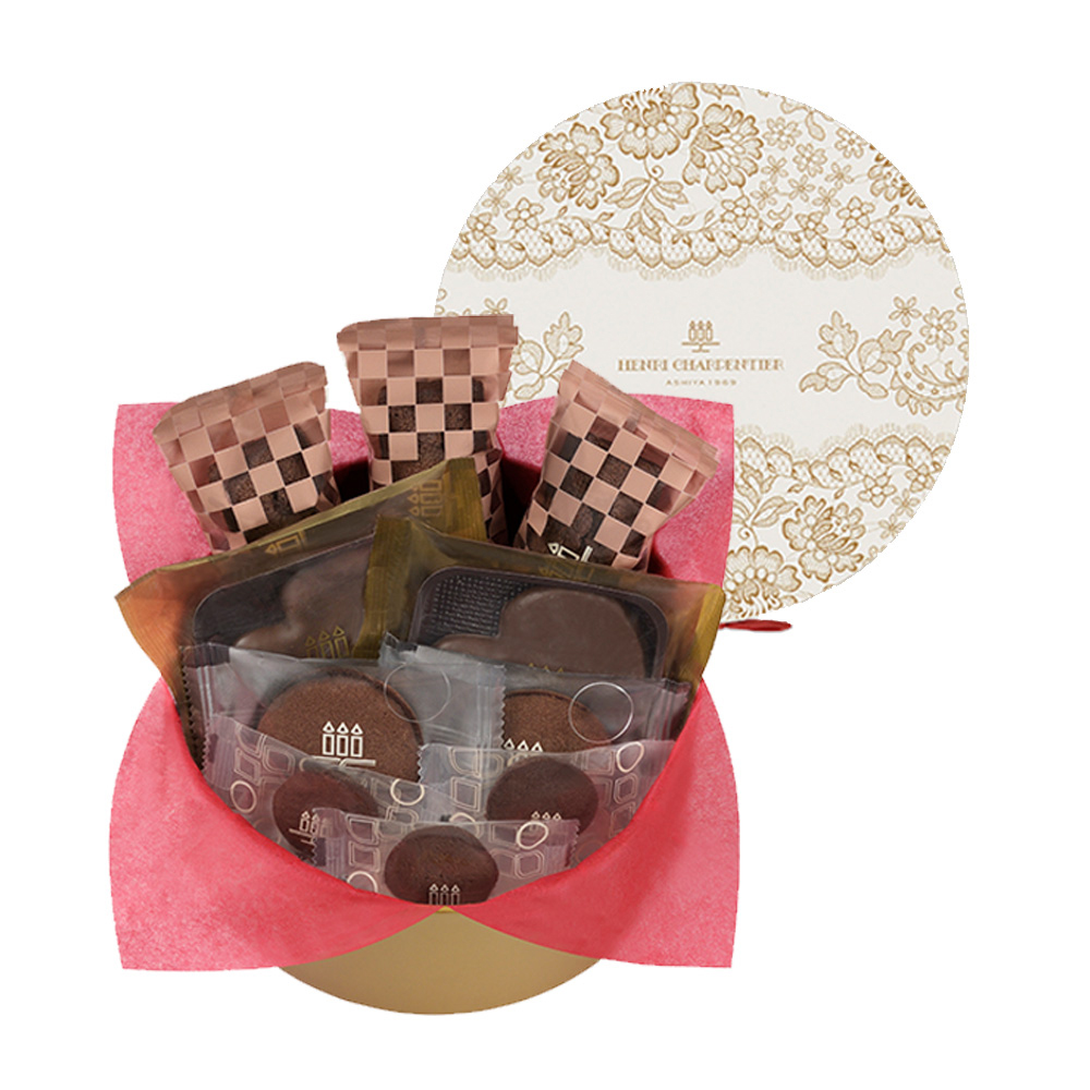 <フィナンシェ・オ・ショコラ>フィナンシェのためだけに開発されたチョコレートを使用し、アーモンドやバターの香ばしさの中でもカカオの風味がしっかりと感じられるよう丁寧に設計しました。焼き上げる直前にそっと加えることで、香りがふわりと広がり、ひと口ごとにチョコレートの存在感が際立ちます。<プティ・ガトー・アソルティ>(ミルクチョコ)まろやかに広がるミルクチョコレートの甘み。<しあわせサブレ(ショコラ)>塩味のきいたさくさくのサブレをくちどけの良いチョコでコーティングしました。冬だけしかお楽しみいただけない味わい深いサブレです。<ラング・ド・シャ>甘さ控えめで、大人の味わいの焼き菓子。ラング・ド・シャ(猫の舌)と呼ばれる薄焼きクッキーに、香り高いラムレーズン入りクリームをサンドしました。