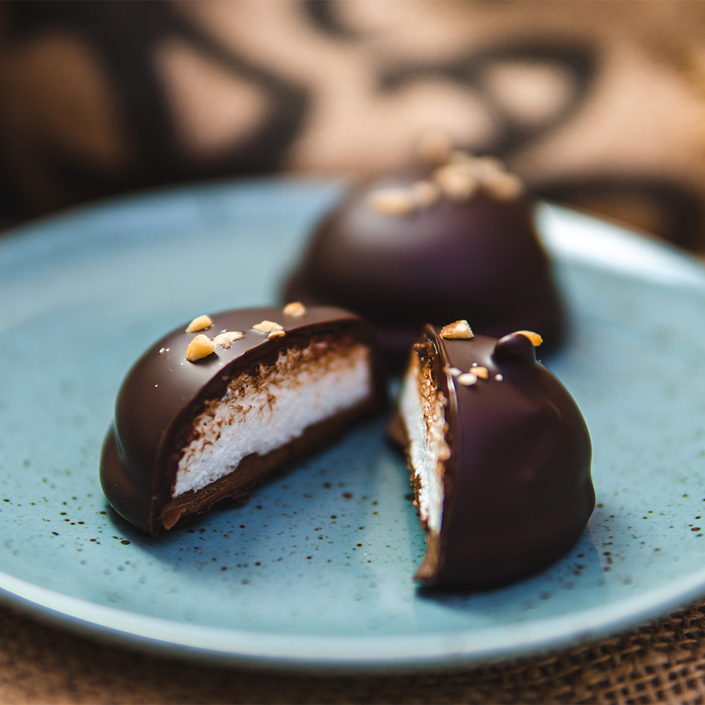 「ネネ」はプラリネやジャンドゥーヤのベースにマダガスカル産バニラが香るギモーヴのムースをのせ、ショコラでコーティングしました。5種類のフレーバーが1箱に収まった、とても貴重な逸品です。それぞれの味わいの違いをお楽しみください。