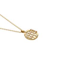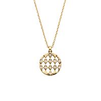 メダル状のトップの中に小さなひし形が並ぶ、グラフィカルな仕立てが魅力的なネックレス