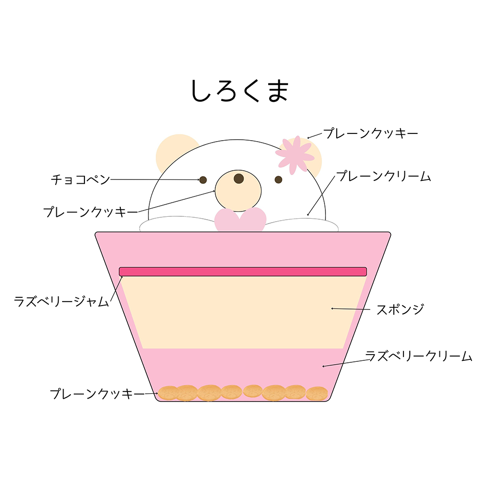 <しろくま>くま部分:プレーンクリーム、ケーキ部分:ラズベリークリーム・ラズベリージャム