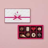 ダークチョコレートとフレッシュクリームを使ったなめらかなフィリングの「マノン・ショコラ」、ヘーゼルナッツプラリネにラズベリーを練り込んだ「フランボワーズ・プラリネ・ハート」、コーヒー味のジャンドゥヤ「コルネット・ドール」、アプリコットピューレが入ったキャラメルの「キャラメル・アプリコット」、ローストピスタチオ入りのホワイトチョコレートフィリング「マノン・ピスタチオ」、オレンジフレーバーのコクのあるガナッシュ「ミニヨン・オランジュ」、ブリュイエールの人気のフレーバーを詰め合わせました。