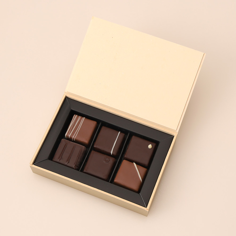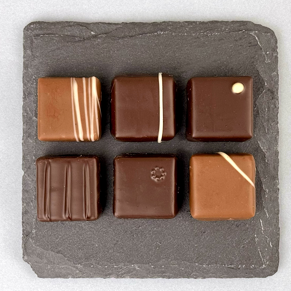 ヒマラヤ岩塩、ティラミスなどの定番フレーバーに、爽やかなパッションフルーツ、滑らかな後味が特徴のレモン、鮮やかで味のコントラストがはっきりしたココナッツに新作のミックスベリーが加わった6粒のアソートです。