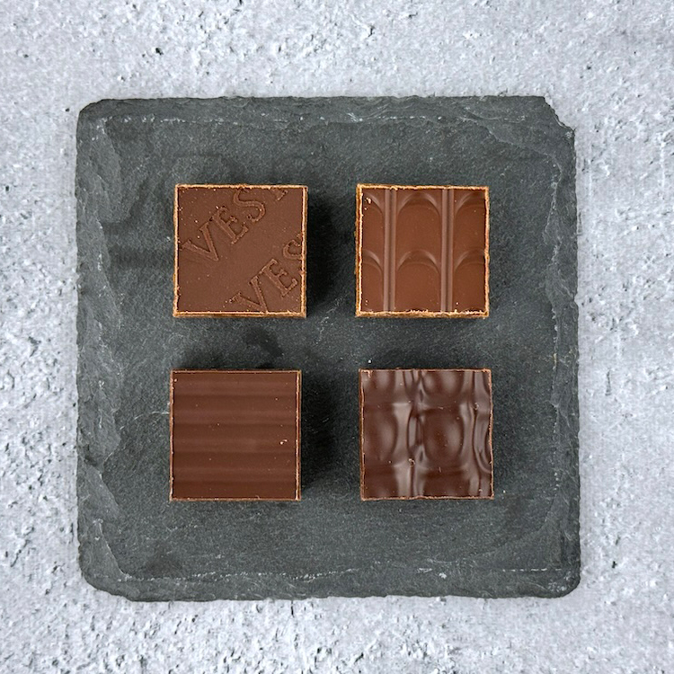 自社農園カカオで感動するほどの口融けを届けたい。VESTRI Emozioniの真骨頂ともいえる産地の異なるカカオを使用したダークジャンドゥイアのコレクション。マダガスカル、ベネズエラ、ベリーズ、ドミニカ共和国のカカオの違いをご堪能いただけます。