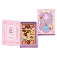 見た目も可愛いスイーツ型のミニチュアチョコレートと、紅茶フレーバーを使用したチョコレートなどを詰め合わせました。アフタヌーンティーを嗜む2人の女の子やバラ、リボンなどの華やかな世界観に仕上げたデザインをお楽しみください。